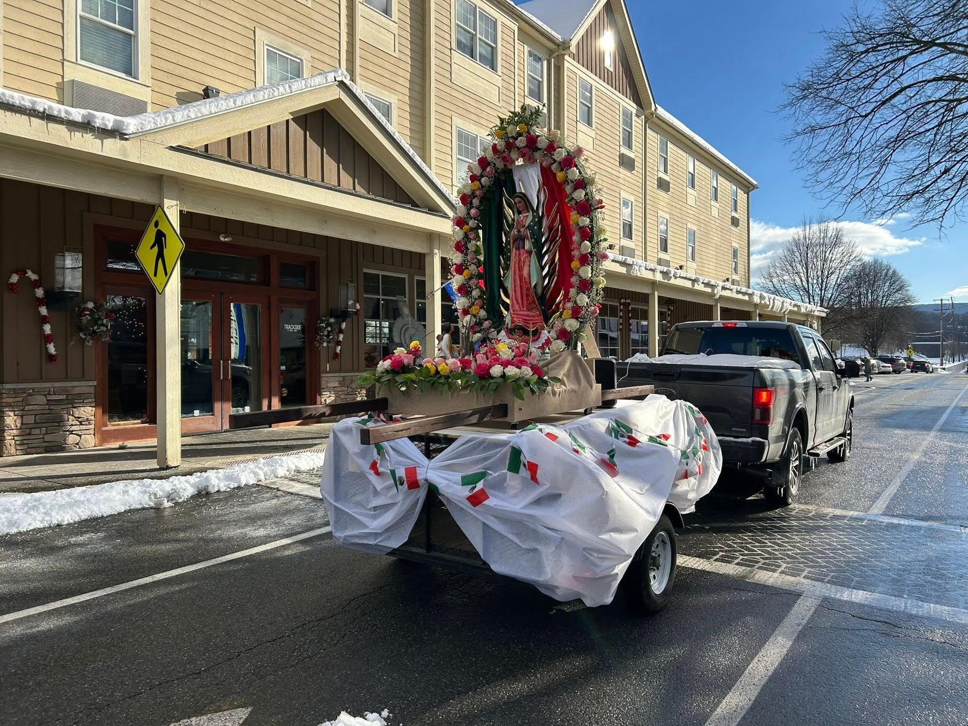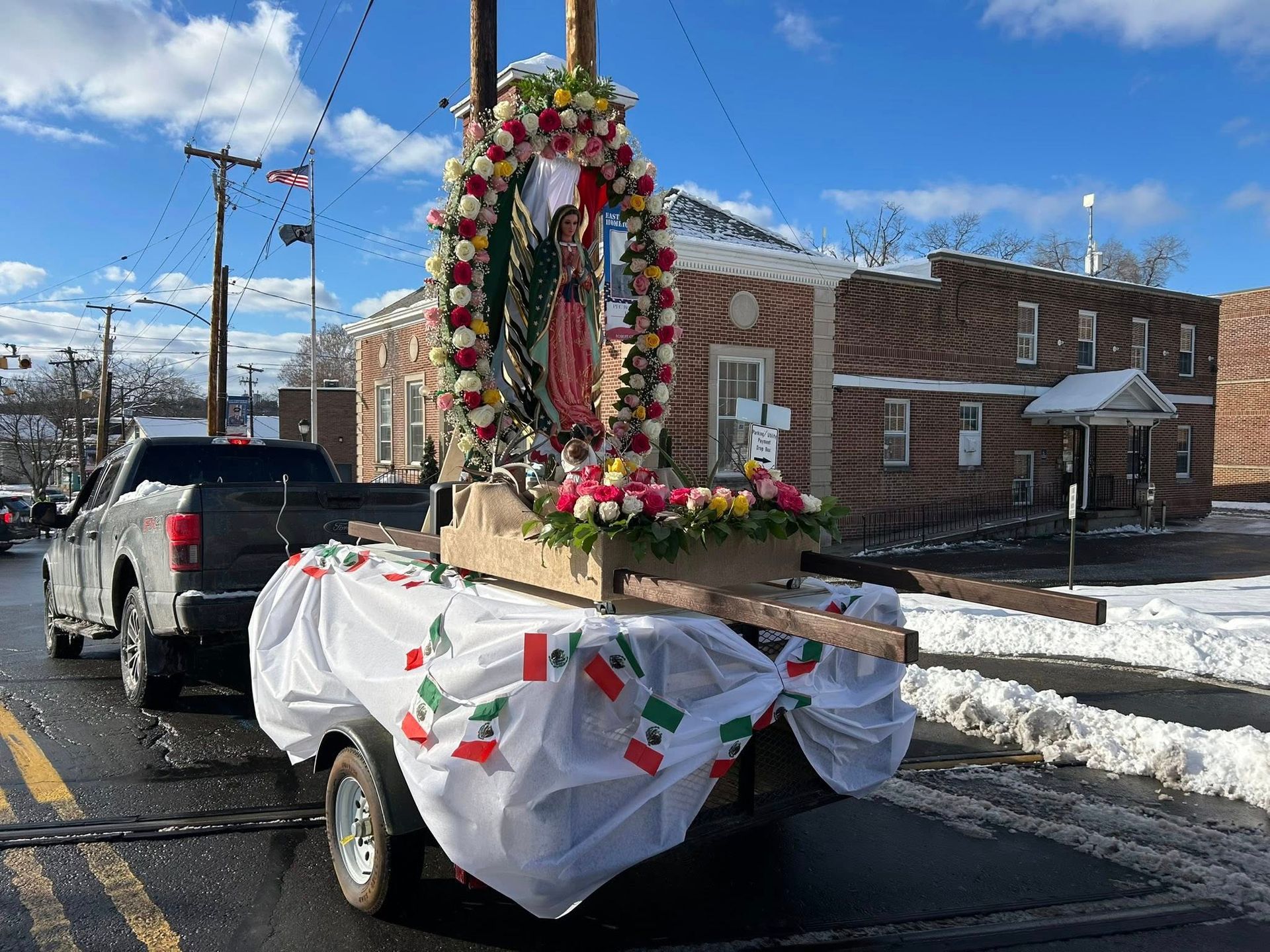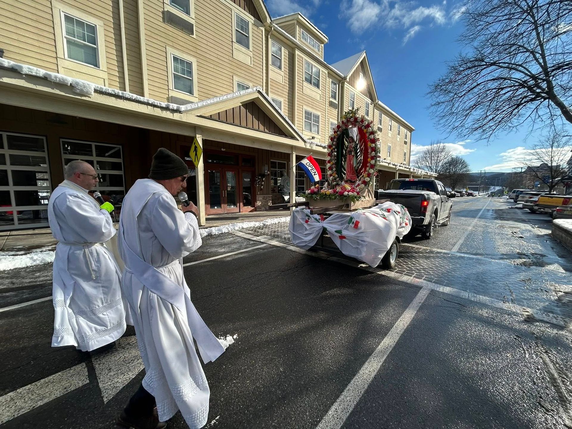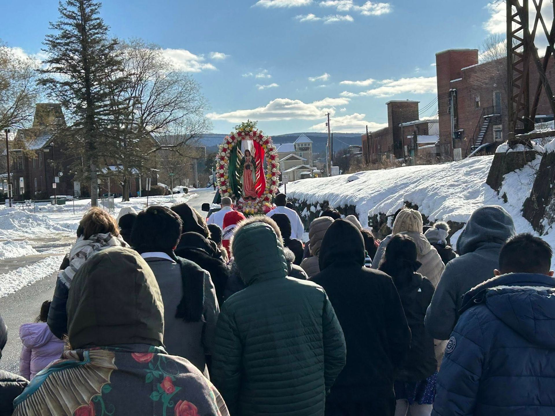 Despite morning snow, on Sunday, December 14th, the faithful gathered for a grand procession and celebration in HONOR OF OUR LADY OF GUADALUPE, PATRONESS OF THE AMERICAS. A Mass, celebrated by Bishop Bambera, was then celebrated at 2 pm.