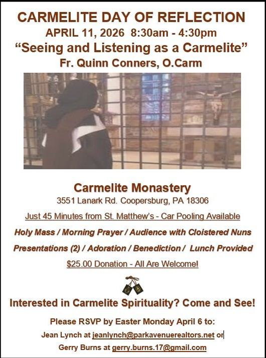 We, the members of St. Matthew's Parish are all servant leaders who strengthened by the Eucharist become stewards of all God has given to us. As faithful stewards we evangelize through our participation in Worship and Word so that we can offer our Service to our parish Community and to the broader Community as we humbly strive to witness the Good News and to spread the Kingdom of God.